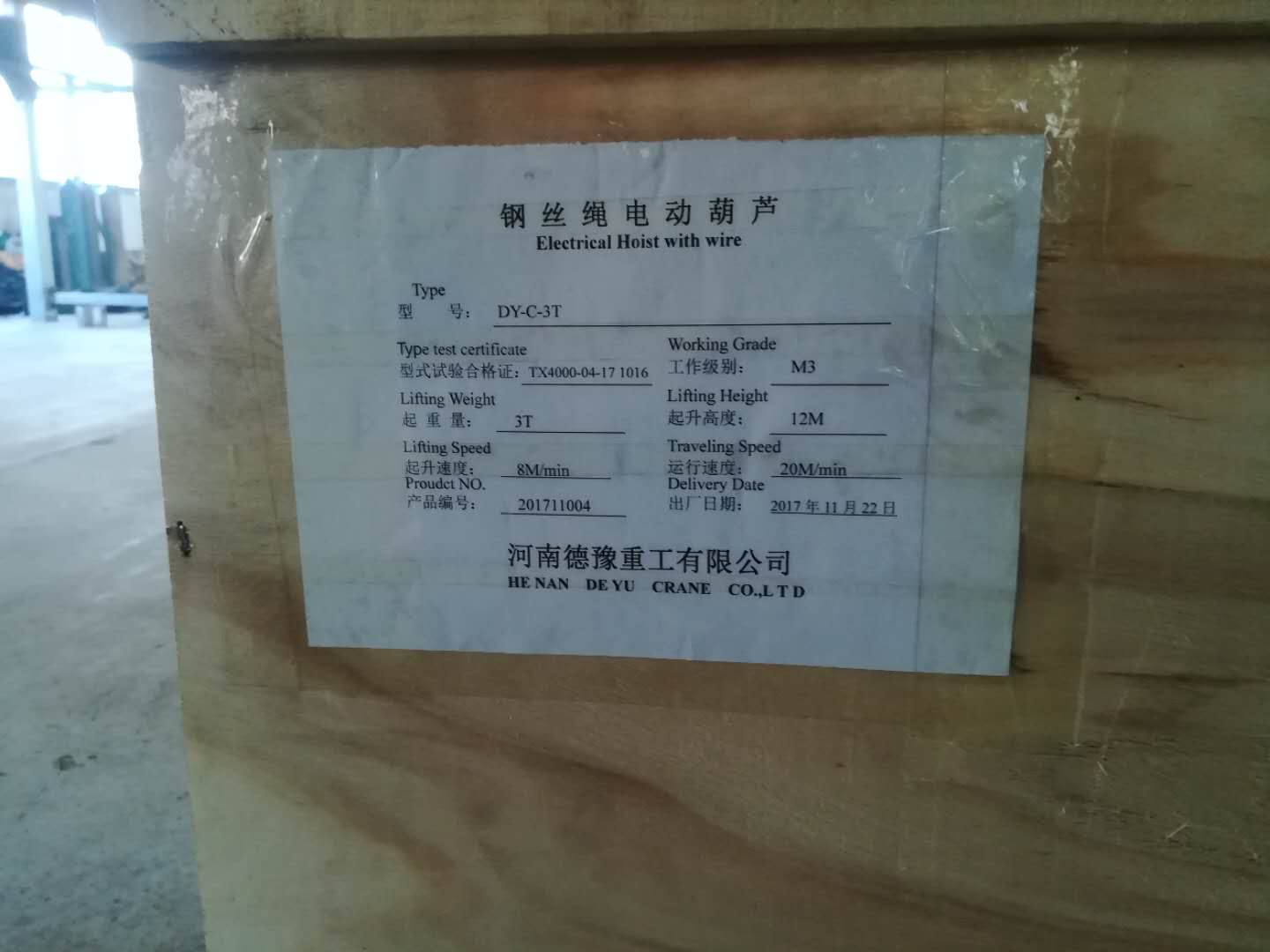實力代表產品DY系列歐式電動葫蘆受到起重機使用單位認可